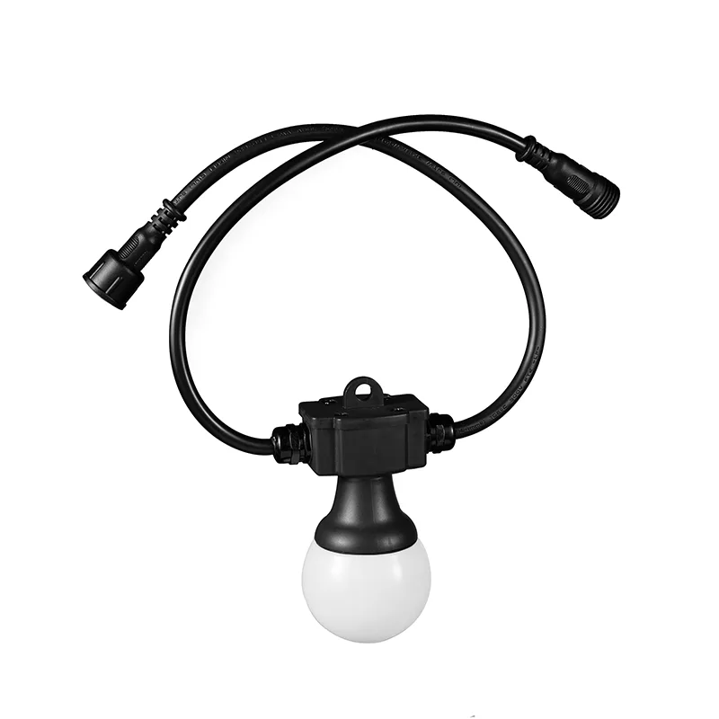 A: Cé nach dtugann teaghráin solais caighdeánacha ach soilsiú bunúsach, seachadann an LED Festoon2 Pixel Bulb RGB éifeachtaí amhairc dinimiciúla. Tacaíonn sé le hathrú téama, cuireann sé in oiriúint do chineálacha éagsúla imeachtaí, agus cabhraíonn sé le hatmaisféar uathúil, sainiúil a chruthú do do spás.